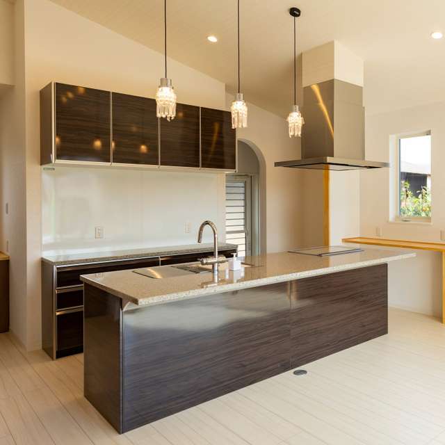 くじらの絵の壁 家族で食事 化粧台 家族でお風呂 システムキッチン